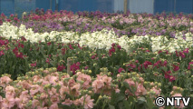 白間津のお花畑は、太平洋に面し、花の香りと潮風を感じながら花摘みが楽しむことができます。1月から3月にかけて、ポピー、キンセンカ、ストックなどの花が咲き揃うのだそうです。花売店も立ち並び、切花を買うこともできます。写真撮影にも人気のスポットとなっています。