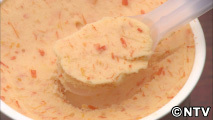 お花のアイスはこの地方名産の無農薬で育てたキンセンカの花びらを生クリーム仕立てのアイスに混ぜこんだ一品。