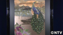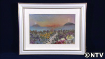 渡辺さんは10年以上前に押し花を利用した絵を作り始めました。ただの押し花を使った絵とは違い、道端の野草やレタス、レンコンなどの野菜も使います。自宅から海が近いため、近くで獲れる海藻なども拾い集め使っています。最近では透明感のある魚の鱗を使って氷を表現した絵も描いています。一見、押し花とは思えないほどの色鮮やかな作品です。