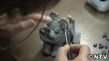 製作時間は石をひとつひとつ接着するのにとても時間がかかる為、大きい石を使用する作品は一週間ほどかかるそうです。