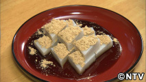 船橋屋初代の勘助は当時、良質な小麦の産地だった船橋の出身で、亀戸天神が梅や藤の季節に、参拝客でにぎわうのを見て上京。湯で練った小麦澱粉をせいろで蒸し、黒蜜きな粉をかけて餅を作り上げました。それがまたたく間に参拝客の垂涎の的となり、いつしか「くず餅」と名づけられ、江戸の名物の一つに数えられる程の評判になりました。