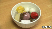 5~60年前からあんみつを提供し始め、10年ほど前から季節限定のあんみつを出すようになりました。亀戸天神の梅まつりの時期に合わせ提供される(3月9日まで)梅あんみつは梅酢や梅じそを白餡に混ぜた梅じそあんが特徴。梅そのものの味わいを引き出すためには白蜜で頂くのが良いそうです。