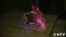 悪魔の炎は、ブルーマウンテンのコーヒーに、火を付けたブランデーをレモンの皮に伝わせかけたもの。 暗闇の中、お客さんの目の前に青い炎が広がり、迫力満点です。