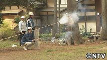 毎年8月下旬に愛宕神社で行われるお祭りでは、神社の境内にやぐらを組み、 そこから3方向に柱を建て、綱を張りめぐらせます。
