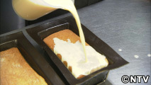 カステラの生地に、固める前の液体のプリンを浸み込ませたあとに焼き上げたもの。