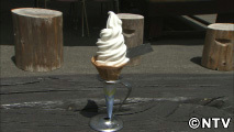 北山崎産の昆布スプーン付きで、昆布の塩分でソフトクリームの甘みが増し、さらにスプーンはソフトクリームを食べた後におやつ昆布として食べられます。