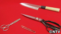 「食用鋏」は、明治初期に生まれ、人形町から日本橋にかけての地域が花柳界でまだ賑わっていた頃、芸者衆がお客さまのために、食べにくい食材(たこ、いかなど)を小さく切るのに使ったのが始まりで、当時は“懐中鋏”と呼ばれていました。芸者衆が胸元に忍ばせているのが粋とされていて、今なお介護や育児(離乳食用)などに使う人が多いのだとか。