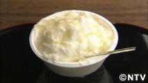 3代目が6年かかって開発した自信作は牛乳ベースのシロップに寒天を加え、ミカンと一緒に凍らせたものを削ります。かき氷とアイスクリームの中間といった、ふわふわ食感が特徴。
