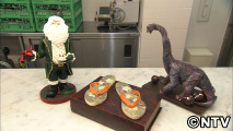 スイートアートデザイナーの藤本美弥さんは、お客さんのオーダーにより、恐竜やグランドピアノ、野球のグローブ等色々なものをチョコレートで本物そっくりに作ります。昔から図工が好きで、初めはアーモンドを使うマジパンというケーキの飾りを作っていましたが、チョコレートならばもっと精巧に作れるのではと、可能性を感じ、独自にチョコレートアートを作り始めたそう。