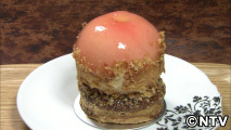 お店のケーキは、旦那さんでオーナーパティシエの智美さんが作っています。天才肌の奥さまの才能を認めながらも、負けたくない一心で努力を重ねたご主人。その努力が認められ、腕前は、世界大会でも優勝したほどです。今の時期一番のおすすめは、桃をまるごと1個使った「まるごと桃のパイ」。桃の中にライチとバラのジュレが入っています。桃は、山梨の農家から智美さんと美弥さんが直接もいできた桃。長年のライバル関係で、ケンカすることもあるそうですが、夫婦で協力し、日々美味しいケーキを提供しています。