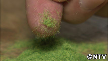 シバフルは、2mmほどのナイロンの短い繊維を、静電気の力を利用して植毛しています。代々木公園をイメージし、4色のナイロン繊維をブレンド。芝生の色合いにもこだわっています。