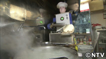 やす まねい君の最大の特徴は、一定のリズムで麺を削り、質にもばらつきが出ない事。