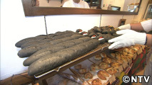 いかすみパンは発酵のタイミングが普通のパンと比べ難しく、普通のフランスパンより早く発酵を終わらせなければならないため、生地から目を離せず、真っ黒なため焼き加減が分からないのだそう。