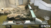 2年前、コツメカワウソの運動不足解消にと、「流しそうめん」ならぬ「流しカワウソ」を始めました。すると、カワウソたちは、大喜びで遊びまわり、お客さんにも大好評!