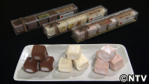 1974年設立のわらく堂。元々は、和菓子の専門店でしたが、現在では洋菓子をメインに営業しています。一番人気の商品「おもっちーず」は、今までにない新食感のお餅のように伸びるチーズケーキ。牛乳や卵、チーズなどの材料にもち粉を加え、さらに秘密の工程を加えることで、コシのあるおもちのような粘りが生まれます。