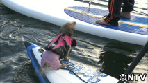 大きなサーフボードの上に立ってパドルで漕ぎ進むスポーツです。