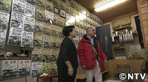壁一面に貼られている「祝・大漁」の貼り紙は全国の漁師さんが大漁を祈願して貼ったもの。