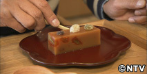 お店の人気メニューのひとつ「野菜羊羹」シリーズの「ミニトマトの羊羹」は、特殊な方法で下ごしらえしたミニトマトを加え、仕上げにはラム酒を加えることで洋風テイストの羊羹に仕上がっています。