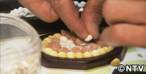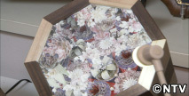 「セーラーズバレンタイン」とは、八角形の木型の中に、貝殻やウニのとげなど、海の生き物を貼り付けて作るアート。
