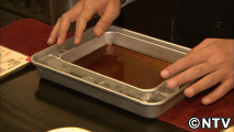 こちらのコーヒーゼリーは「その場で作る珈琲ジュレ」という名のとおり、注文を受けてから1つずつ目の前で手作りしています。作り置きしたものはすぐに酸化してしまい本来の美味しさを味わってもらえないと考え、手間をかけるこの方法を選んだそうです。コーヒージュレ用の豆を挽き、小さなコーヒーカップにゼラチンを溶いて、その上にコーヒーを入れ、ガムシロップを加え、氷で冷やされたトレイに注ぎます。10分程度で完成し、常に出来立てのものを提供しています。