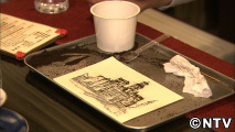 表の看板には来店したお客様の素直な感想がシールで貼られています。