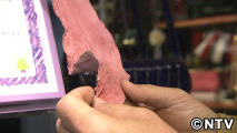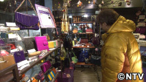 牛革の1.5倍の強度と伸縮性があり、染色しやすいという特徴もあって、カラーバリエーションも豊富。店内にはバックや財布をはじめ、パンプスやピアスなども販売されています。