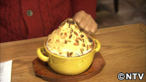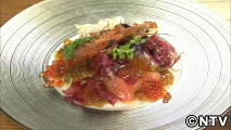 シロザケの切り身をほうれん草、エビのスープ「ビスク」と合わせた物の上に卵白とアーモンドスライスを乗せオーブンで焼いた「サーモンとホウレンソウのアーモンド ドーム ココット」がオススメなんだそうです。