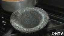 溶岩で出来た石臼をじっくり熱します