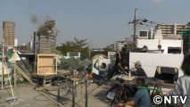 火薬を使わずに、人の手で引っ張ることで計算通りにビルが上から崩れ、よりリアルで迫力ある破壊シーンが撮影できるようになったそうです。