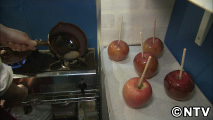 りんごはその時期の美味しいりんごにこだわり、表面に塗る飴は、二種類の砂糖をブレンドして作ります。飴を作る際ちょうど良い薄さ、溶けやすさのための火加減が重要でその日の気温や湿度を見ながら作ります。