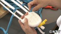 材料の確保に困っていた作家に快く端切れを送ったところ、お礼に送られた布ぞうりの気持ち良さに小高さんは感動。