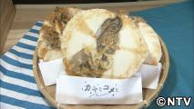 この店オリジナルの「カキとコメと」は、地元で採れたカキと米粉でつくるおせんべい。