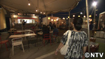 提灯の明かりが照り、雰囲気良い音楽もかかっている、楽しい場所です。