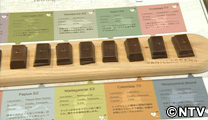 こちらのチョコレートは、全て南米、アフリカ、東南アジアなどからカカオ豆を取り寄せ、店内の工房にて自家焙煎して作っています。カカオの濃さ、香ばしさ、味の濃さなどが違う、こだわりが詰まった、産地別の12種類の板チョコレート。今月から始まった「テイスティングプレート」で全ての味を試すことが出来ます。