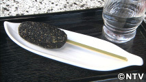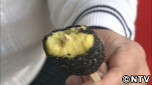 スイートポテトにゴマをまぶしたおやつ「ちょんまげいも」。秋田出身の女将さんが、地元の名物、キリタンポをイメージして作りました。ネーミングは、孫がその形から、ちょんまげ!…と言って遊び始めたことからだそうです。