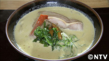 「白カレーうどん」に使う出汁は、京都でも一部の料理店にしか出回らない貴重なカツオ節やサバ節など。白味噌や様々なスパイスにココナッツミルクや牛乳を加え、じっくりと煮込んで自家製のルーと、手打ちうどんに季節の野菜を盛り付ければ完成。
