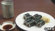 かんぴょうの甘さとわさびの辛さがたまらない「さびかん」は、コーヒーとセットで。