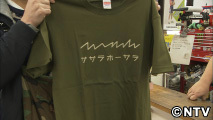 年々使う人が減っている青梅弁をモチーフにしたTシャツを扱う自転車屋さん。
