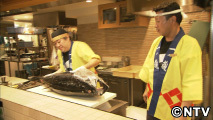 こちらは、去年12月のオープン以来、生のマグロを毎日お客さんの前で解体しています。