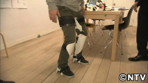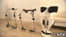 「アルケリス」は、お医者さんの外科手術の負担を減らすため、金属加工の専門家とプロダクトデザイナーが開発中の「身に付けて歩けるイス」。膝と足首の関節を固定し、太ももの裏側とスネをサポートし、体重を支えることで、座っているのと同じように中腰の姿勢を保てます。