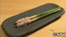 谷中生姜に、スペイン産の栗豚を巻き付けて焼いた「豚肉の生姜焼き」や、醤油とバルサミコで煮付けたイモの上に、お客さんの目の前でスライスした自家製ハムをのせていただく「肉じゃが」。