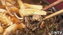 あんは、日本そばのツユをベースに、たくさんの野菜と魚介類が入り、とろとろアツアツにします。