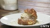 菊地さんが考案したというこちらの肉シュークリームは、小さく切った豚肉を玉ねぎと一緒に炒めて、2日間、冷蔵庫で寝かせます。それをフードプロセッサでペーストにした豚肉のリエットに、マスカルポーネチーズを合わせて、はちみつとブラックペッパーで味をととのえたら、完成!