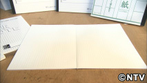 従来のノートの製法では、接着剤の特性上で見開き中央の折り目の部分が膨らんでしまい書きづらい部分が出てしまうという問題点に着目。折り目の部分でもスムーズに書けるノートの開発に着手しました。綺麗に開いて、かつバラバラにならないための製本を可能にするべく、その道70年の職人が試行錯誤する毎日が続いたそうです。