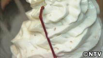 「おせんべいアイス」は店のご主人の思い出の味。自家製のアイスクリームにあられせんべいを入れ、細かく砕きながら練り込んでいきます。塩味が効いたサクサク感と香ばしい食感を出すために、注文を受けてから作ります。懐かしい味が蘇ったと地元の人からも大好評だそうです。