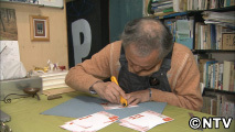 本業の金属造形の作品の他に、昔から画をかいてきた経験を活かして画の中に動物が隠れている「隠し絵」を使った年賀状を製作していました。それが大好評だったことから、最近では新しい年賀状をと、立体年賀状を作り始めたそうです。立体年賀状は、貰った人が作りやすいように全て切り取り線を入れて送っています。元日以降は、草地さんのホームページで「酉」の型紙を誰でもダウンロードできるそうですよ。