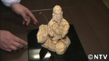 また、こちらのお店の入口には様々な食材で作った彫刻作品が、季節に合わせて展示されています。中でも高野豆腐の彫刻は圧巻!乾燥した高野豆腐をもち米のお粥で貼り合わせて大きな塊をつくり、固まったら細工用の包丁で少しずつ削り出していきます。高野豆腐彫刻は、江戸時代から伝わる技術だそうですが、ご主人は独学で文献を読み、オリジナルでこの技術を習得したのだそうです。