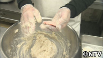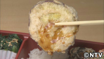 すり身天婦羅丼は、天ぷらなのに小麦粉を一切使っていません。井上蒲鉾店で作ったすり身に醤油やみりんなどを加え、さらにやわらかく撹拌したものを野菜と絡めて油で揚げたものです。小麦粉を使っていないので、さつま揚げのような食感を楽しむことができます。