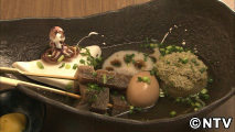 2015年にオープンした日本酒バル。47都道府県の日本酒と創作和食の日本酒と様々な酒を楽しめます。料理はカウンターに並ぶ大皿料理と、寒い時期に大人気の爽やかな酸味と旨みが染み込んだ「梅おでん」。大粒の紀州南高梅と梅酢を出汁に入れて煮込んだおでんです。こんにゃくを一度冷凍した「氷こんにゃく」や、はんぺんにイイダコをのせた「座布団タコ」などユニークなメニューも人気です。
