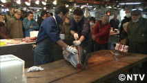 足立市場は2か月に1度一般の方にも開放されてマグロや鮮魚を買うことが出来ます。普段はプロの方に買ってもらうための卸売ですが、「足立市場の日」だけは一般に向けてパック売りをしています。マグロの解体や抽選会も行われます。